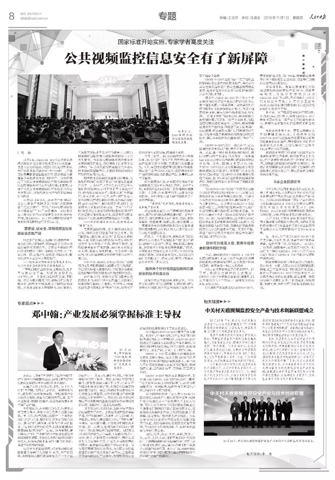 人民公安报也选择在实施当日整版专题报道GB35114-2017国家强制标准发布的重大意义。