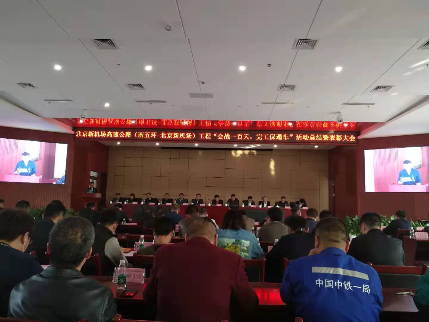 2019年10月18日下午,由北京京投交通发展有限公司组织,北京市交通委、北京市新机场办、北京大兴区政府等各单位领导出席,隆重召开了北京新机场高速公路(南五环-北京新机场)工程“会战一百天,完工保通车”活动总结暨表彰大会。会上对为北京新机场高速公路(南五环-北京新机场)工程做出突出贡献的先进单位及先进个人予以表彰。