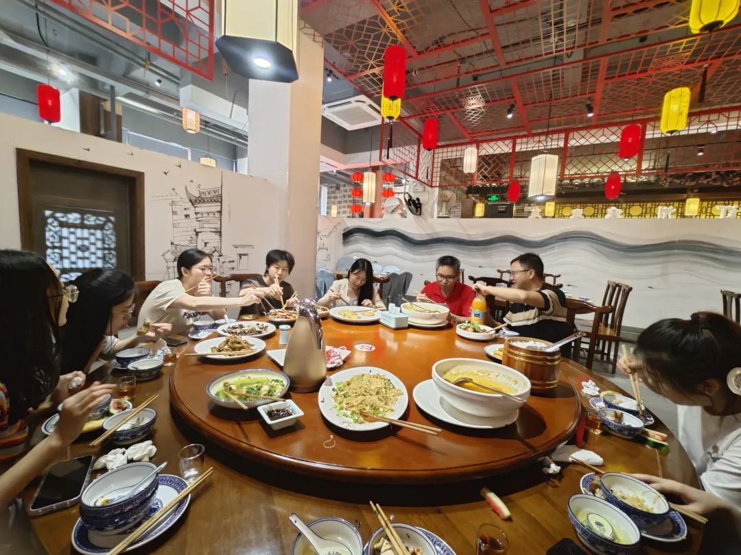 参观完古田会议纪念馆,大家便前往长汀县城。到达时已经是傍晚时分,看到同事们饥肠辘辘,于是我们来到客家特色餐厅,看着河田鸡、灯盏糕、烧大块、豆腐圆等美味菜品开始大快朵颐。