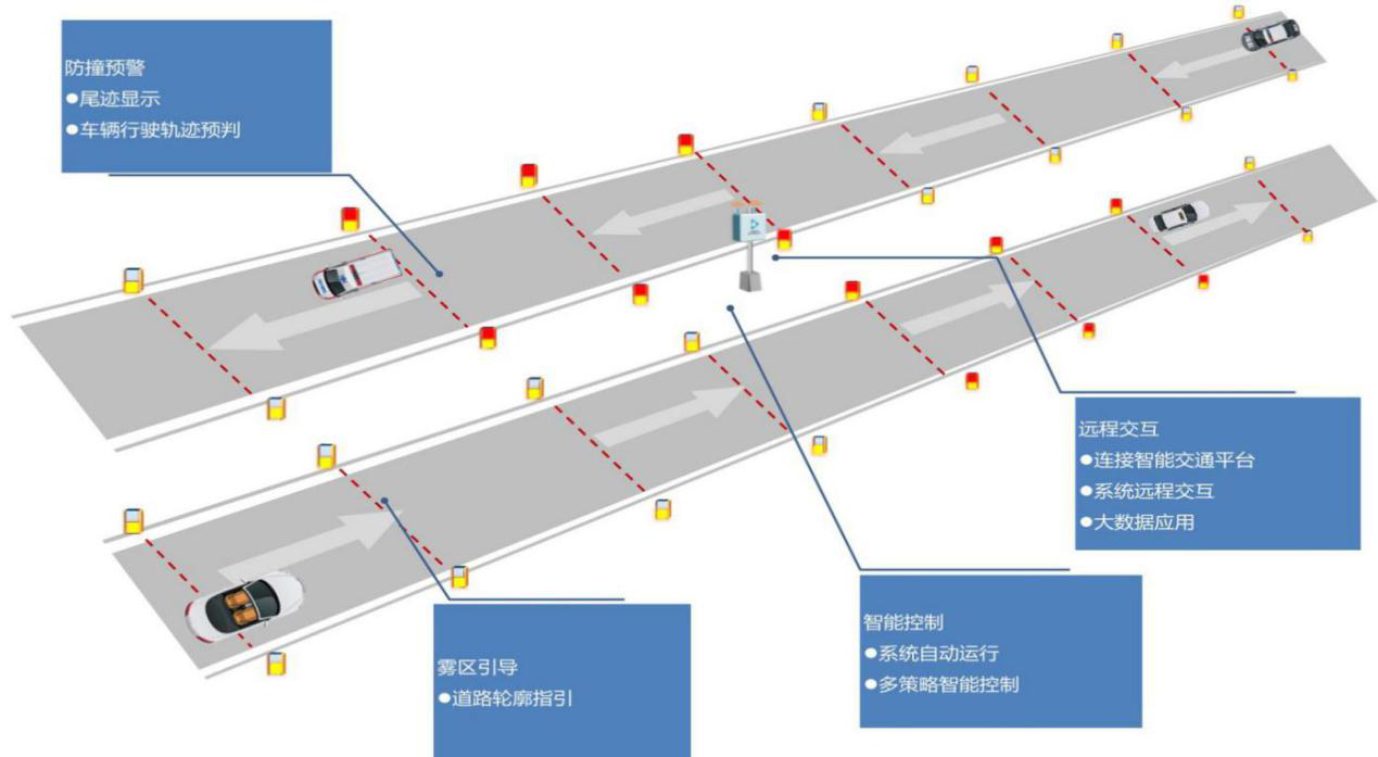 团雾天高速公路安全行车解决方案-雾区智能引导及防撞预警系统