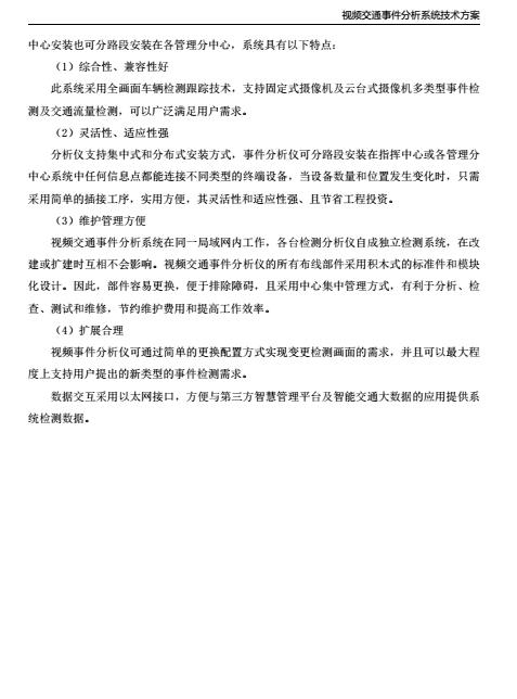 视频交通事件分析仪基于目前先进智能分析技术的交通事件分析系统,采用先进的主动式视频分析、特征物体建模、人工智能分析及深度学习的设计理念及核心技术。系统可同时实现交通流量分析、交通事件分析、交通环境分析等多功能运用,系统根据不同地点、气象、光照环境等条件实时分析所输入的视频图像信号,从而良好的解决高速公路、城市交通、隧道、桥梁等管理运营安全中所遇到的重要交通违法行为,在事件发生早期对交通行为进行干预及引导,相当程度上减少交通事故及二次事故引起的人员伤亡、财产损失、交通阻塞、道路封闭等问题。系统提供高精度的视频分析同时也支持强大的分析管理数据输出,基于以太网的数据交互通讯,可为交通信息发布、道路运营状态监测、交通数据云计算、大数据、交通决策等智慧交通运用提供基础数据,对提高智慧交通系统的管理水平具有重要的现实意义。