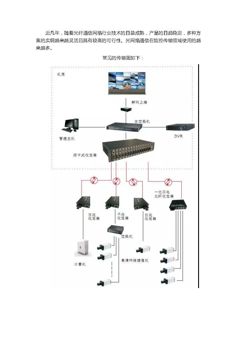近几年,随着光纤通信网络行业技术的日益成熟,产品的日趋稳定,多种方案的实现越来越灵活且具有较高的可行性。光网络通信在监控传输领域使用的越来越多。