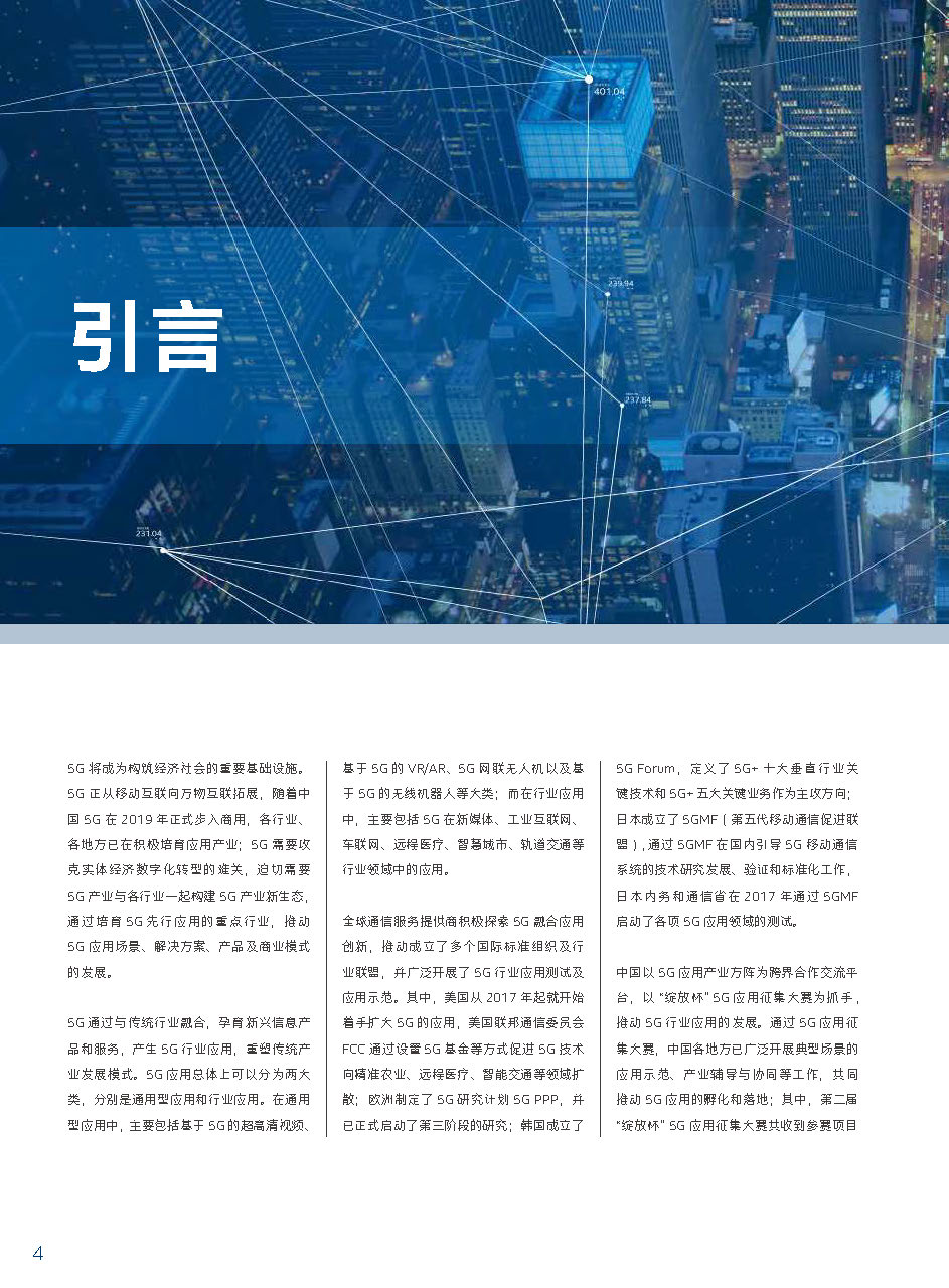 5G将成为构筑经济社会的重要基础设施。5G正从移动互联向万物互联拓展,随着中国5G在2019年正式步入商用,各行业、各地方已在积极培育应用产业;5G 需要攻克实体经济数字化转型的难关,迫切需要5G产业与各行业一起构建5G产业新生态,通过培育5G先行应用的重点行业,推动5G应用场景、解决方案、产品及商业模式的发展。