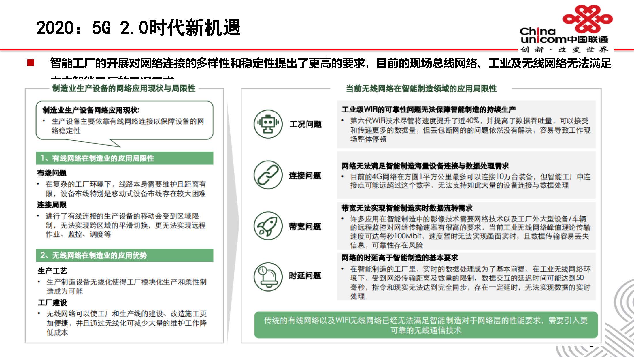 5G与工业互联网的融合创新发展,将推动制造业从单点、局部的信息技术应用向数字化、网络化和智能 化转变,也为5G开辟更为广阔的市场空间,从而有力支撑制造强国、网络强国建设。